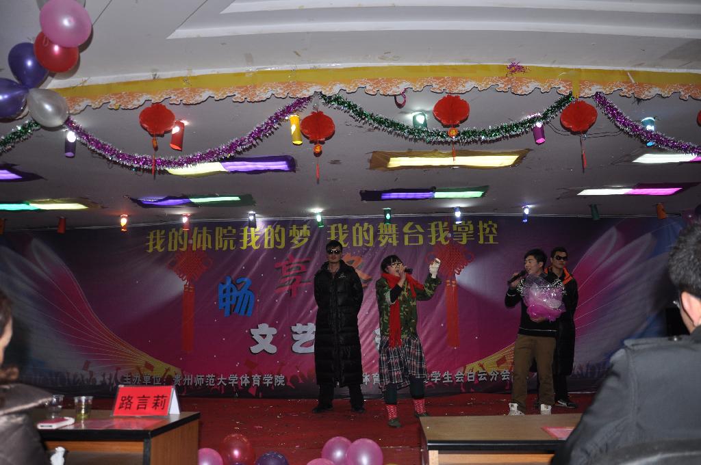 2012年12月26日晚,我院“畅享冬日”文艺晚会在白云校区综合楼211大厅举行。莅临晚会现场的有院党委书记路言莉老师、院长姚鑫老师、副院长徐宏老师、办公室主任杨中兵老师、院团委书记马丽华老师、12级辅导员杨馥瑞老师等。出席晚会的嘉宾还有校团委邓江老师、白云校区各学院辅导老师及各学院学生干部代表。
