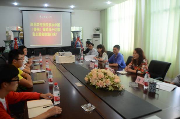 2013年10月12日下午,我院二楼会议室,隆重召开了欢迎参加中国(贵州)援助乌干达项目的五位志愿者凯旋归来的座谈会!院党委书记路言莉,党委副书记张礼军,副院长徐宏,团委书记马丽华,党委秘书王自翔,团委副书记彭佐扬及各辅导员,部分学生代表参加会议。