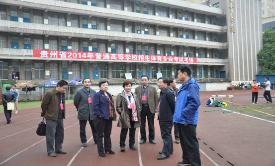 4月9日始,贵州省普通高等学校招生考试体育专业考试受到了社会各界的广泛关注。省教育厅厅长霍健康携副厅长等一行十余人,省招生考试院院长周宝英、书记邓厚勇等领导在我校党委书记韩卉等校领导陪同下视察了体育专业考试工作。