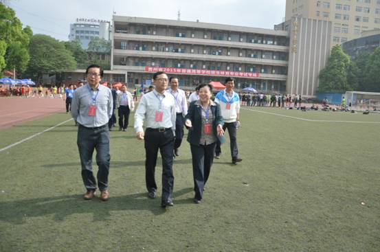 4月18日上午,副省长、省招生考试委员会主任陈鸣明一行在省教育厅副厅长、省招生考试院院长周宝英,省招生考试院副院长罗勇以及我校校长、考点主任李建军,副校长刘肇军,纪委书记唐本文等领导陪同下巡视了体育专业考试工作。