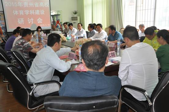 5月16日下午2点,“2015年贵州省高校体育学科建设研讨会”在我校体育学院二楼会议室召开,福建师范大学党委书记、博士生导师黄汉升教授,我校党委副书记、校长李建军,党委委员、副校长乙引,全国高等教育出版社体育分社社长范峰等领导出席。全省各本科院校体育学院负责人、专家学者等60余人参加了会议。