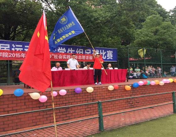 7月15日下午15:30,体育学院2015年暑期“三下乡”社会实践青年志愿者赴息烽县九庄镇服务活动出征仪式在贵州师范大学宝山校区田径场举行,体育学院党委书记路言莉、副书记张礼军,副院长王瑛、曾晓进,党委秘书王自翔,学院团委书记马丽华,团委副书记、2014级辅导员彭佐扬,带队老师刑永鹏及25名青年志愿者参加出征仪式。仪式由马丽华老师主持。
