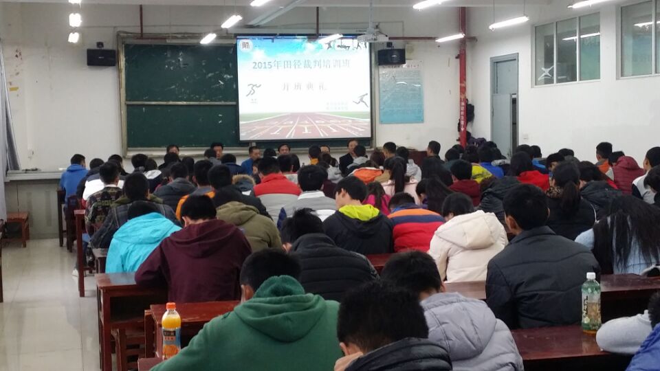2015年11月28日上午09:00,由贵州省体育局及我校体育学院举办的田径等级裁判员培训班开班典礼在我校综合楼8-4隆重举行。贵州省体育局竞训处王聪处长、韩国伟科长代表体育局竞训处出席开班典礼,对体育学院多年举办田径裁判培训班的工作给予充分肯定,并对今年的培训工作作出了具体的指示并提出要求。体育学院姚鑫院长、汤跃书记、徐宏副院长、人文学科主任孟刚教授参加开班仪式。本次培训班分为田径国家二级和三级裁判培训,其中,二级217人,三级321人。同时,通过多年来不断的努力及总结,并在贵州省体育局的指导下,开云电竞实力强如今成为部分体育项目二级和三级裁判培训的重要基地。