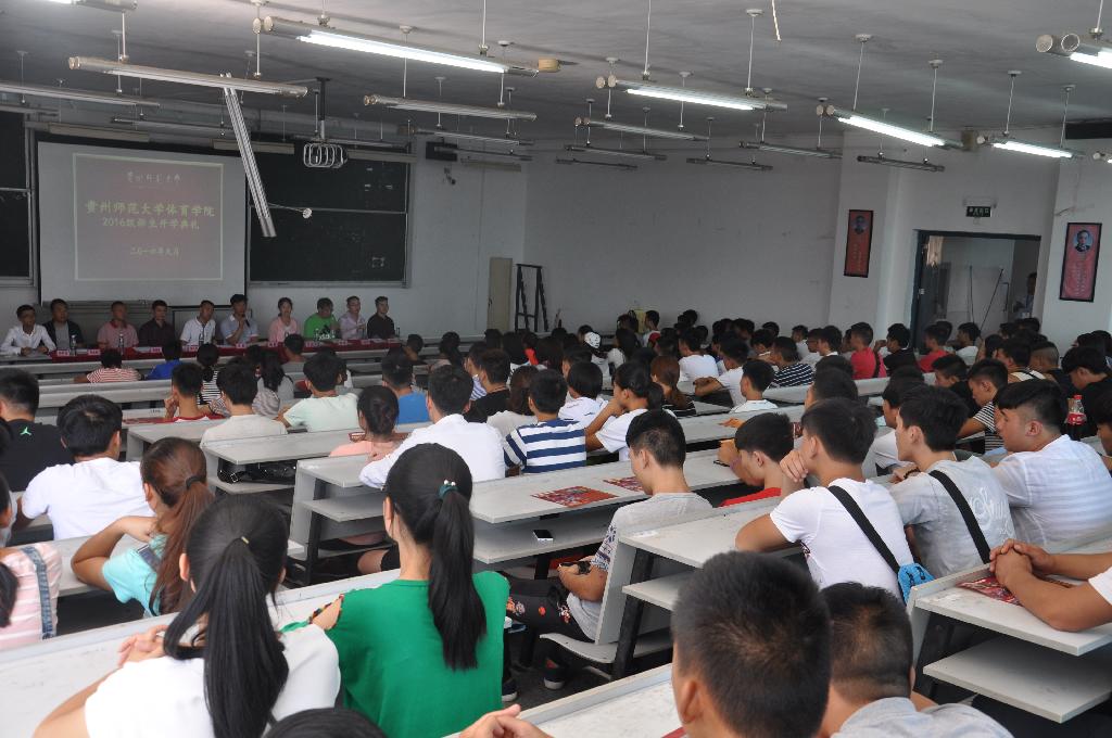会上,姚鑫院长对2016级新生们表示欢迎和祝贺的同时分析了国内外体育产业发展和体育教育发展存在的差异和差距,指出体育作为当前中国的朝阳产业,具有不可估量的发展前景。