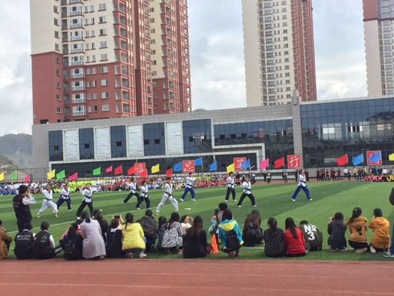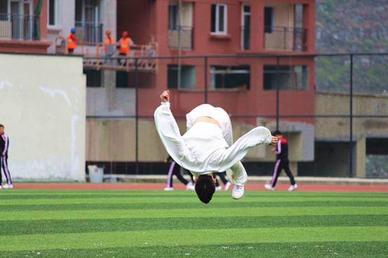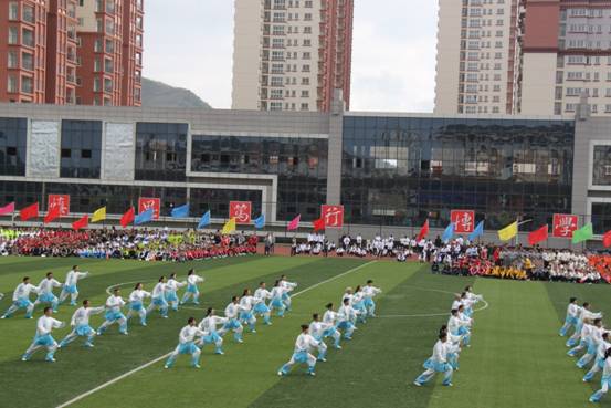开幕式文艺表演中,体育学院舞龙舞狮和教职工太极拳表演,既有浓厚的民族传统文化特色,又有时尚的流行元素。身手迅猛矫健的跆拳道表演和武术、拳击、摔跤串烧表演更是让观众掌声不断。音乐学院管乐队表演活泼欢快、乐音悠扬,将我校学子的精神风貌诠释得淋漓尽致。求是学院和体育学院的弹力带操和啦啦操表演活力四射,用动感的节奏体现了积极、健康、向上的校园文化。