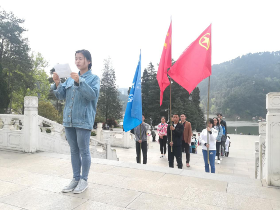 前往陵园途中,一路红歌相伴,到达目的地后,在团委组织部王小红的组织下,学生代表带着自己的敬佩之意上前敬献花圈,随后杨馥瑞老师上前庄重的整理挽联,并带领全体学生骨干向先烈进行默哀,表达对先烈深切的哀悼和无尽的敬仰之情。在庄严肃穆的氛围下,学生骨干田玉等纷纷发表感想,杨馥瑞老师提到:“在新时代的今天,缅怀先烈重要的是在于传承革命先烈的革命精神,即使前进的道路任重道远,但身处在新时代的我们,应当为实现中华民族伟大复兴的中国梦不断向前奋斗”。并要求同学们,要学习并传承革命先烈的精神,在新时代中展现出青年大学生应有的风采。