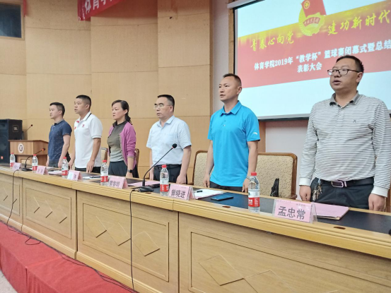 大会开始前,与会领导、老师和全体同学一起观看了视频《体育学院“教学杯”篮球赛精彩剪影》。在庄严的国歌声中,大会正式拉开了序幕。会上,主席台的领导和老师依次宣读了体育学院2019年“教学杯”篮球赛获奖组织和个人名单,并进行了颁奖。