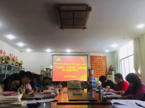 9月30日,体育学院召开党委理论学习中心组扩大会议暨“不忘初心 牢记使命”主题教育第二次集中学习会,学院党委中心组成员、各师生党支部书记参加学习。会议由学院党委书记蒙黎明主持。