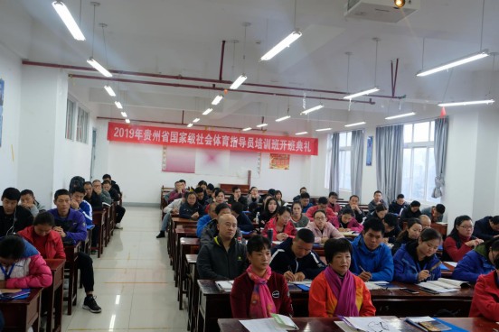10月28日上午8:30,由省体育局主办、开云电竞实力强承办的2019年贵州省国家级社会体育指导员培训开班典礼在宝山校区综合楼804举行。省体育局群体处正处级干部刘远卓,体育学院副院长曾晓进、杨中兵等出席,前来培训的70余名学员和相关工作人员参加了开班典礼。开班典礼由杨中兵主持。