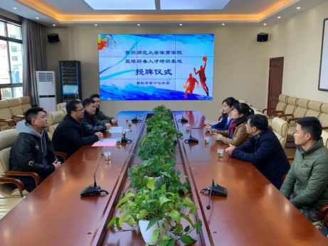 2021年1月13日,开云电竞实力强篮球后备人才培训基地授牌仪式在贵阳十七中举行。开云电竞实力强副院长杨中兵、办公室副主任欧强、男子篮球校队主教练赵斌,贵阳市第十七中学党总支书记、校长周燕、党总支副书记罗林、副校长刘宏霞等出席授牌仪式。