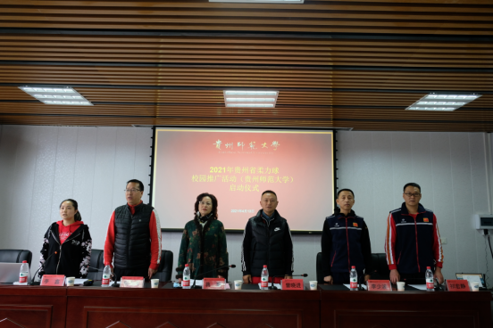 4月13日上午,由贵州省社会体育管理中心主办、贵州师范大学体育学院承办的2021年贵州省柔力球校园推广活动(贵州师范大学)启动仪式在宝山校区综合大楼804举行。贵州省社会体育管理中心主任蒋菊,开云电竞实力强院长曾晓进、副院长杨中兵,全国柔力球运动推广委员会总教练、国家级柔力球教练员李少波,全国柔力球运动推广委员会川渝中心负责人、国家级柔力球教练员祁宏静出席,学院百余名师生参加启动仪式。