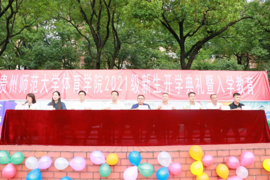 新生代表郭子赫发言:大学是崭新的开始,是梦想起航的新起点,倡议全体新生进入大学后,要严守校纪校规,勤奋刻苦学习,讲究文明礼貌,注重团结协作,做一个好学、敬业、德高、技强的贵师体育人。