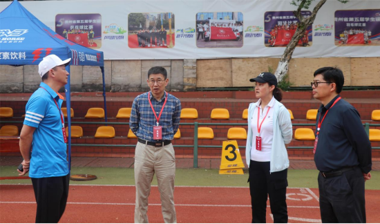 4月20日下午,贵州师范大学考点领导小组组长、校长张绍东到宝山校区田径场巡视全省2023年普通高校招生体育专业考试情况,相关负责人陪同。