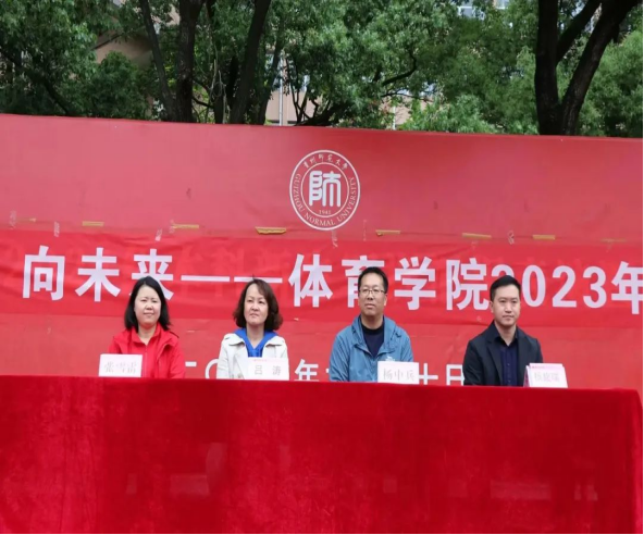 为进一步提升同学们的身体综合素质和体质健康水平,丰富同学们的校园文化生活,展现体院学生热情奔放的青春活力和积极向上的精神风貌,营造和谐健康的校园氛围,5月12日中午12:30,体育学院在田径场开展“青春奔跑·向未来”校园跑活动。体育学院党委书记吕涛老师、副院长杨中兵老师、党委组织员杨馥瑞老师、团委负责人张雪雷老师出席活动。本次活动共有14支队伍参加。