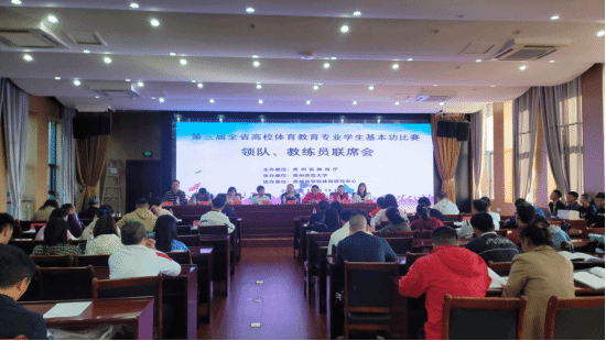 10月15日,第三届全省高校体育教育专业学生基本功比赛在我校西校区合一楼五楼会议室开幕。本次比赛由贵州省教育厅主办、贵州师范大学承办、贵州省学校体育研究中心协办。省教育厅体卫艺处曾洪波、开云电竞实力强院长曾晓进、大赛评审专家及14所高校的领队、教练员参会。会议由开云电竞实力强副院长杨中兵主持。