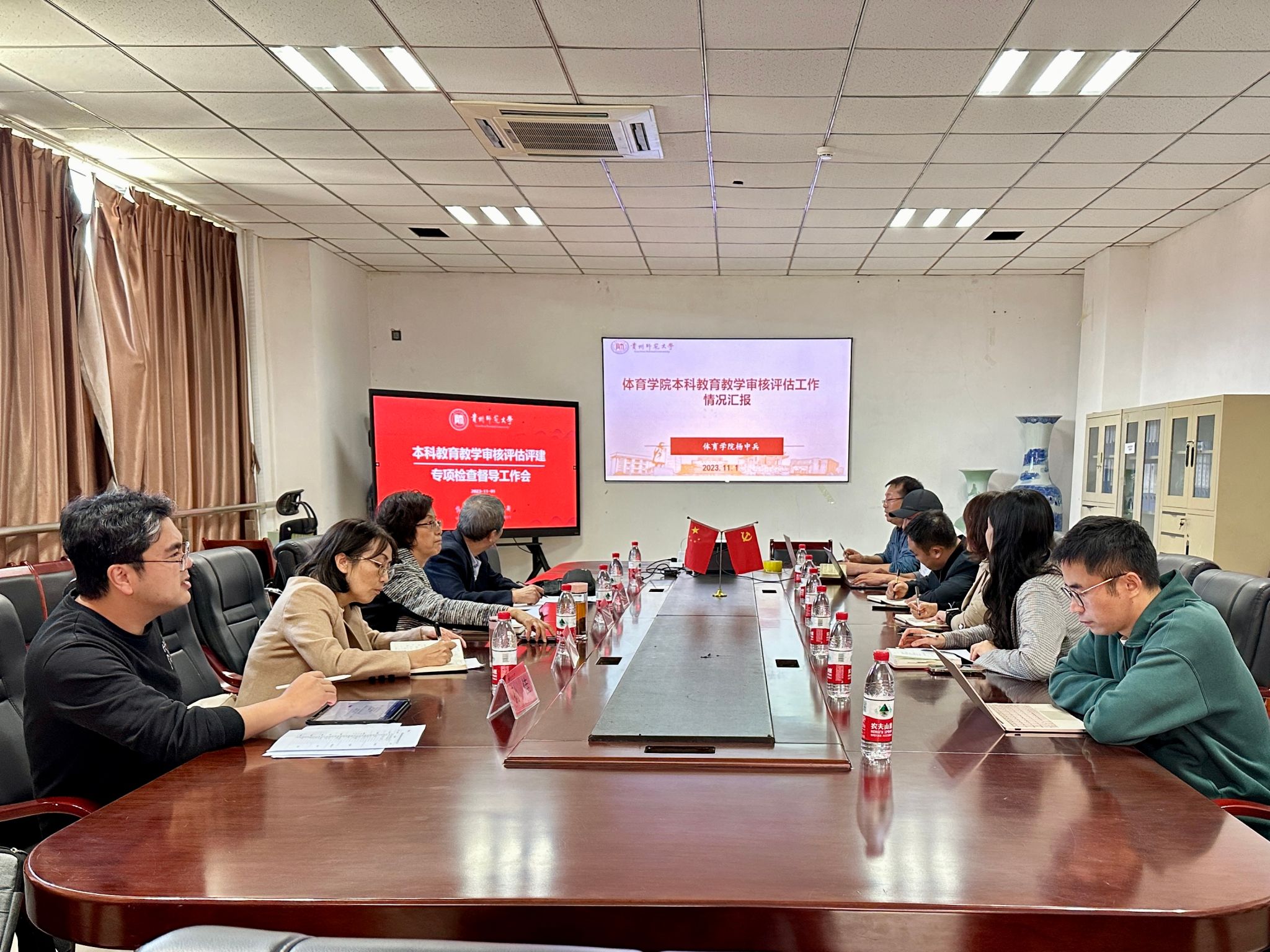 11月1日下午,校党委副书记银熙惠带队到体育学院开展本科开云体育软件审核评估专项检查,学校招生与就业指导处处长黄平惠和学校评估办郑志平、孙佳以及学院党政班子、各专业负责人、教学管理科相关人员参加。