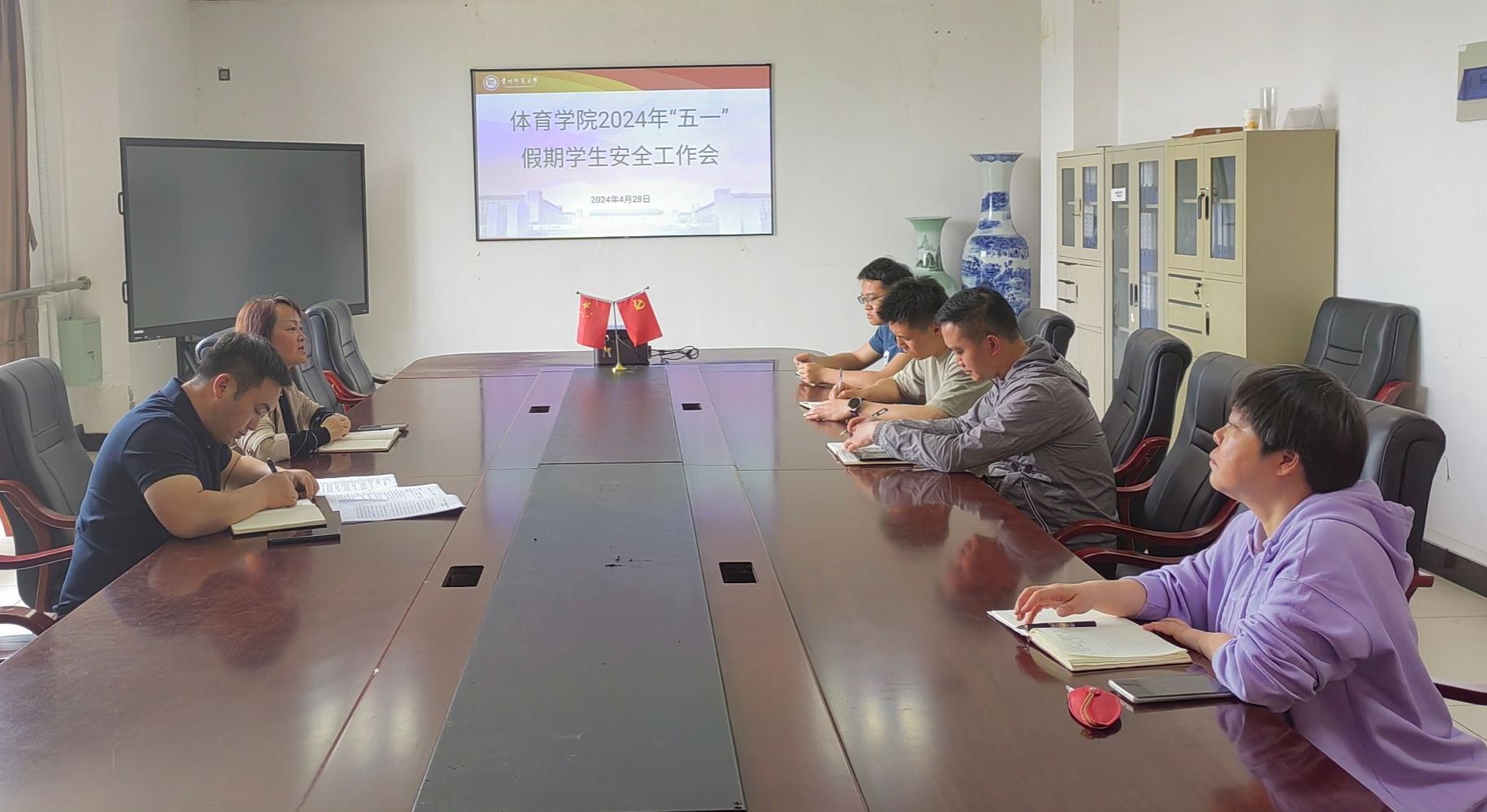 为深入学习贯彻习近平总书记关于国家安全工作的重要论述,认真落实省教育厅、学校关于做好假期学生安全工作的有关要求,切实做好“五一”劳动节假期期间安全稳定工作,进一步强化部署近期重点工作,4月28日,学院在西区合一行政楼三楼会议室组织召开2024年五一假期学生安全工作会,学院党委书记吕涛、党委副书记张怀德以及全体辅导员参加了会议。
