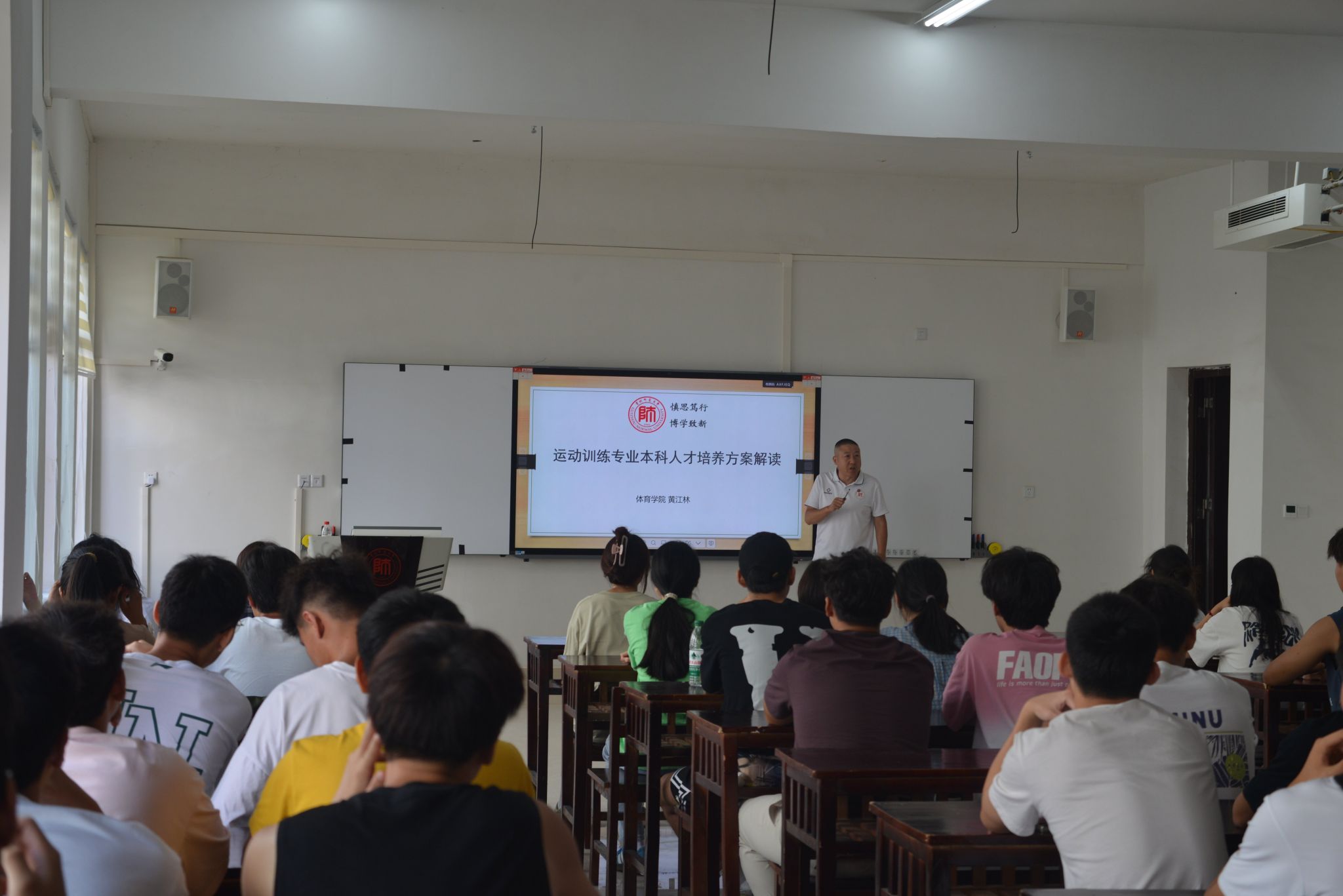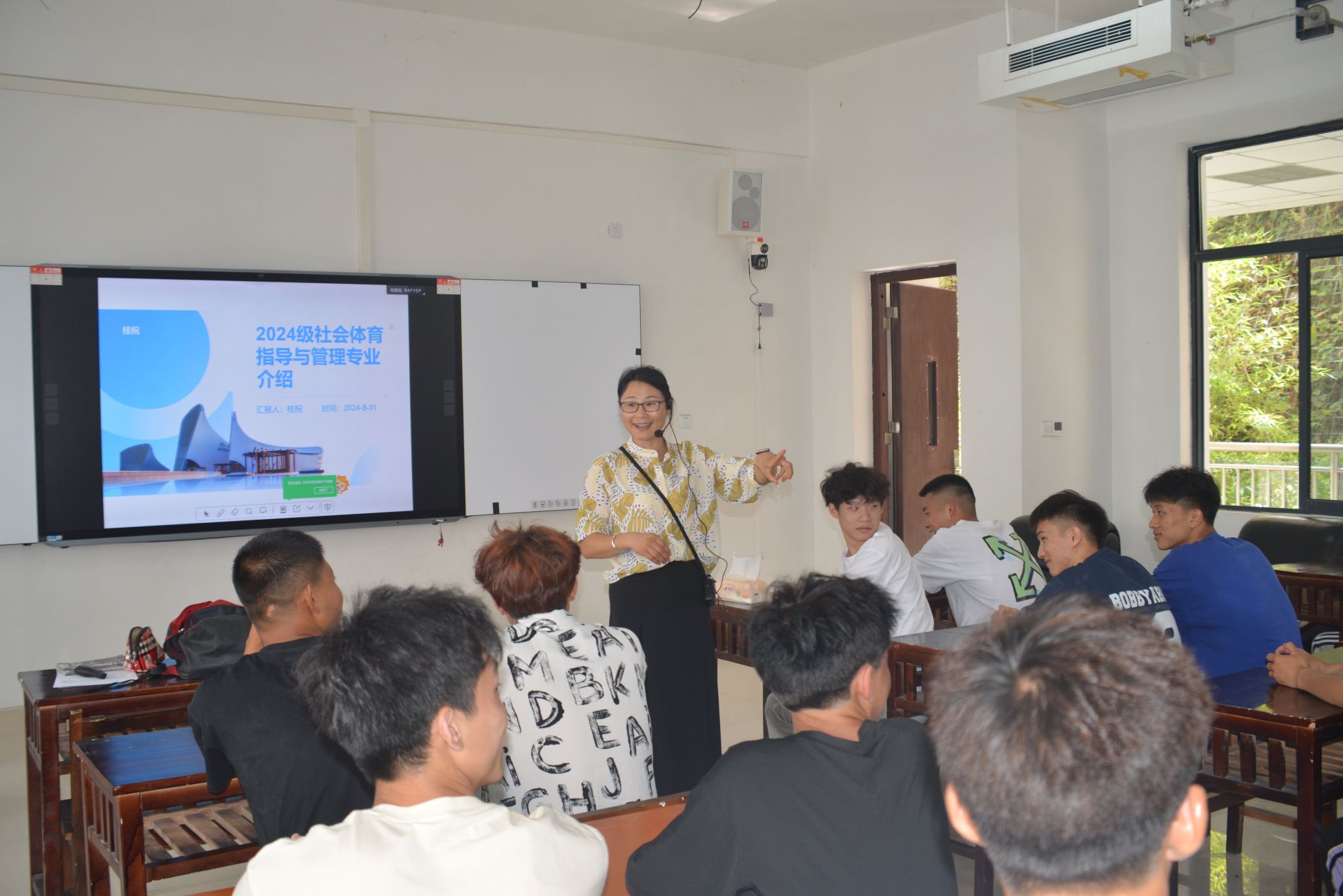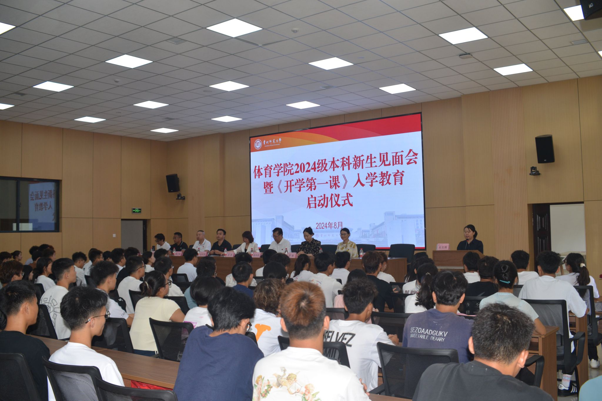 为促进2024级新生尽快适应大学生活,明确人生目标,体育学院于8月31日在学院学术报告厅召开了2024级本科生新生见面会暨入学教育启动仪式。体育学院党委书记吕涛、副院长杨中兵、党委副书记张怀德、副院长罗琳,相关专业负责老师及2024级新生辅导员和360名本科新生参加。会议由团委书记张雪雷主持。