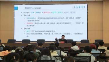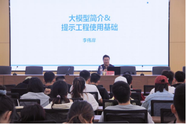 李伟岸老师从四个方面详细介绍了相关内容,包括大模型简介、提示工程的基础知识、提示工程的基础使用示例、提示工程的优化技巧。通过生动的讲解和实际案例展示,李老师向同学们深入解析了如何利用人工智能技术生成文案、图片及视频等,并重点强调了在实际操作中清晰指令的重要性。讲座内容不仅理论扎实,还结合了当前前沿技术,为同学们提供了理论与实践相结合的学习体验。在总结发言中,李老师进一步强调,同学们在使用人工智能工具时,应始终保持独立思考,避免过度依赖技术,鼓励大家培养批判性思维,合理利用科技赋能学术与实践。