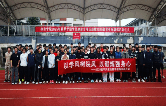 为深入推进我院学风建设,引导学生树立健康的生活理念,使同学们养成良好的生活习惯。10月14日,我院在东区二号田径场举行2025年秋季学期学风建设专项活动暨2025级学生早锻炼启动仪式。学院党委副书记张怀德、各年级辅导员、早锻炼教练员以及2025级新生共计300余名师生参加。
