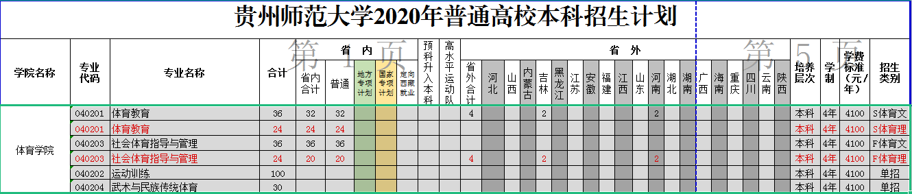 | 贵州师范大学2020年普通高校体育学院本科招生计划 |