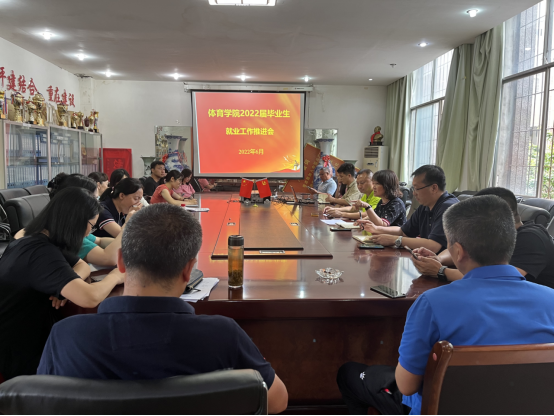 6月28日上午,体育学院在二楼会议室召开2022届毕业生就业工作推进会。体育学院党委书记吕涛、院长曾晓进、副院长杨中兵,各专项老师、论文指导老师及毕业班辅导员参加。