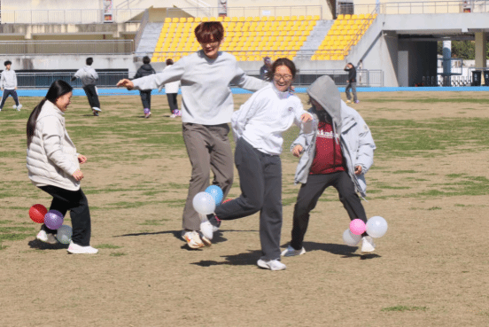 随着活动的正式启动,田径场瞬间化作热闹的赛场。小组成员协同作战、默契配合,在保护本方气球数量的同时组织团队进攻。大家在赛场上奋力奔跑,欢声笑语与呐喊助威声交织回荡,随着气球爆炸声渐歇,气球大战圆满落幕。汗水交织间,大家的情谊愈发浓厚,心与心的距离也悄然拉近。