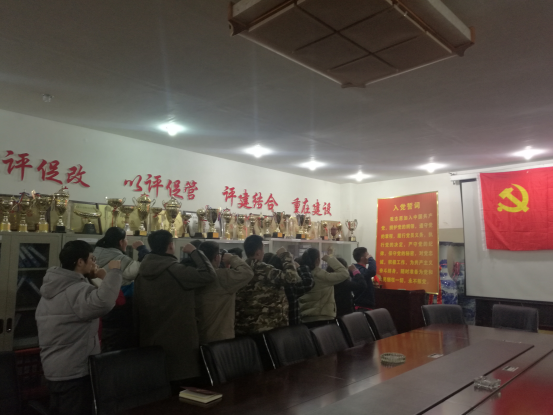 大会还讨论了杨巧妹等三位同志按期转为中共正式党员的问题,最后正式党员带领预备党员面对党旗进行入党宣誓。