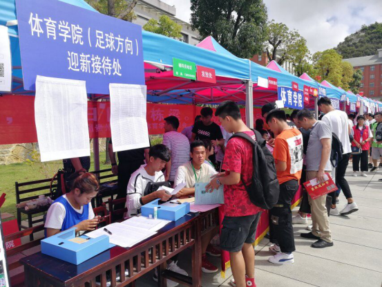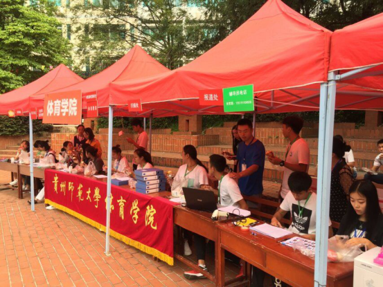 2018年9月1日体育学院分别在宝山校区和花溪校区(足球学院)开展2018级迎新工作。