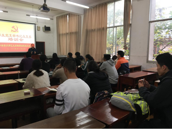 11月5日下午,体育学院在学院三楼研究生教室召开学生党支部书记及支委培训会,学院党委副书记吕涛、各年级辅导员、各支部书记及支委、学院党生党建中心全体人员共40余人参加培训会。会议由学院党委组织员孟忠常主持。