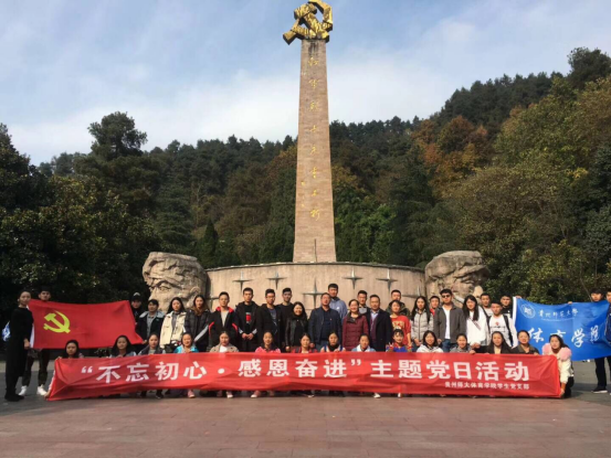 下午,党员们前往遵义红军烈士陵园,缅怀革命先烈。首先全体成员对革命烈士进行默哀一分钟并在孟忠常的领誓下,面向党旗,高举右手,庄严宣誓,重温了入党誓词。庄严的宣誓仪式使大家铭记党的宗旨,发扬爱国奋斗精神。最后集体合影留念。