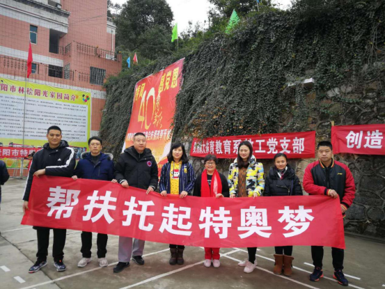体育教育系党支部书记吴燕、主任黄江林,国家篮球E级教练员简涛、彭仕杰,国家健将级运动员宋方芳,国家田径一级裁判员洪邦辉、刘金凤一同参加帮扶活动。