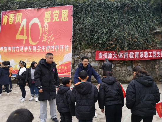 2018年12月23日下午,在贵阳市特奥运动员训练基地组织开展“沐春风 感恩党”庆祝改革开放四十周年活动之际,体育学院体育教育系党支部应邀参加庆典并开展特奥运动员训练帮扶指导。