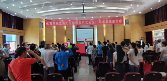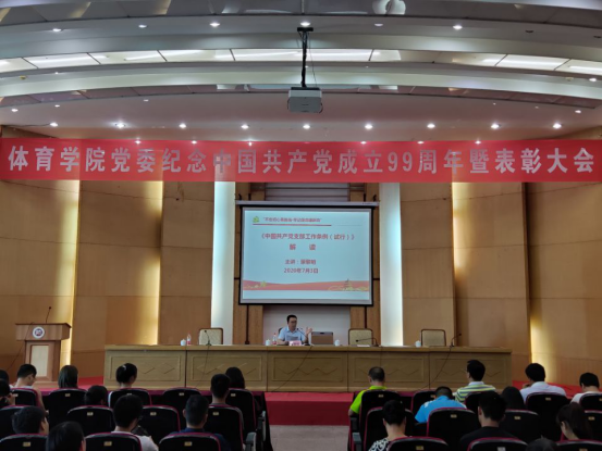 7月3日下午,体育学院党委在宝山校区田家炳三楼多功能厅召开纪念中国共产党成立99周年暨表彰大会。学院党政领导班子成员及全院教师党员和在校学生党员参加,会议由学院党委副书记吕涛主持。