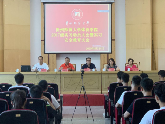 随后,杨中兵作实习工作安排。他强调,根据贵州师范大学毕业实习管理办法(试行)》中的相关规定,结合体育专业人才培养目标和体育学科特性,学院对2017级学生实习的各项工作进行了精心安排,一是成立了院领导、专业负责人、教材教法、实习指导老师及院督导共同参与的实习工作领导小组;二是组织专家通过多次研讨论证,制定了专业实习大纲、实习手册等规范性文本资料,三是统筹遴选了实习单位、校外培训专家和校内外指导教师;四是规范过程性指导,加大过程性评价权重,科学评定学生实习成绩,从而保证实习各项工作按时高质量完成。