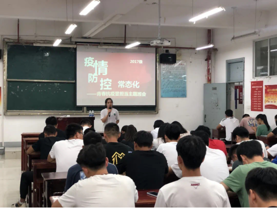 江坤老师从疫情防控校园管理、宿舍及个人卫生、健康打卡和防疫知识等方面作了详细讲解。