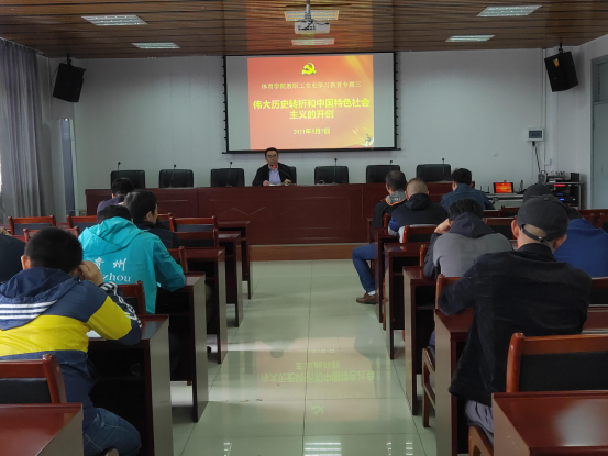 5月7日下午,体育学院在综合大楼8-4教室召开教职工大会开展党史学习教育和师德师风警示教育。学院党委书记蒙黎明、院长曾晓进、副书记吕涛、副院长杨中兵以及全院教职工100余人参会。