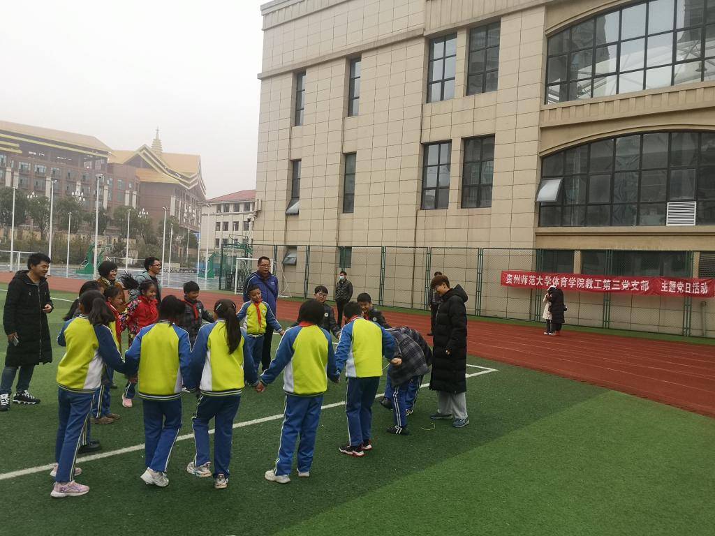 2021年11月19日,体育学院教工第三党支部、理论教研室带领足球本科学生党支部赴贵安新区贵州师范大学贵安附属小学开展 “忆初心、重教研、强服务”主题党日活动。