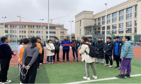 体育学院教工第三党支部(理论教研室)书记吴燕老师介绍本次活动主题:追忆初心使命,助力小学教育振兴,激励党员坚定理想信念,激发为群众办实事的热情。本次送教助学活动共分为三个板块:花样跳绳教学、足球教学、综合素质拓展训练。