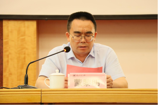 最后,大会进入颁奖环节。校团委副书记李正军老师宣读了2021年宝山校区篮球联赛获奖名单。体育学院党委书记蒙黎明老师宣读了2021年“教学杯”排球比赛获奖名单。体育学院院长曾晓进老师宣读了2021年“教学杯”足球男子组比赛获奖名单。获奖队伍和班级代表分别上台领奖。