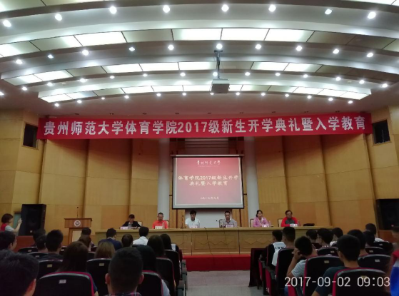 姚鑫致欢迎辞,他代表全院师生向2017级248名本科生表达了热烈的欢迎和衷心的祝贺,对他们选择进入开云电竞实力强学习表示感谢,并做了“怀揣梦想,砥砺前行,开启人生新征程”的讲话,要求同学们要理解大学精神,做梦想践行的体育人;弘扬体育精神,做慎思笃行的体育人;传承体院精神,做博学致新的体育人。新生代表、运训专业的王惠贤同学号召同学们:秉承“爱国、奉献、敬业、自强”的师大精神,以高度的学习热情,严谨认真的学习态度,追逐自己的梦想;教师代表、副教授桂祝欢迎新生加入体育学院大家庭,并希望同学们通过技能掌握、规划人生、社会实践、沟通交流、同学相处、父母联系等方面书写自己的大学生活。