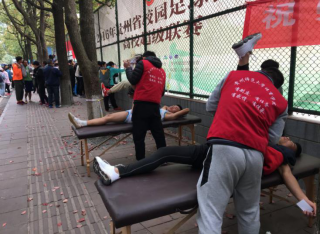 在志愿拉伸服务处,由体育学院专业学生组成的志愿服务队以专业的知识技能,服务于800米考试结束的学子,为考生们讲解了体能恢复与提高的技巧及方法,通过肌肉拉伸让考生们在考试后得到充分的放松与休息。同时,院团委还利用新媒体手段,开放体考服务平台,借助体院之声为考生解答相关困惑。