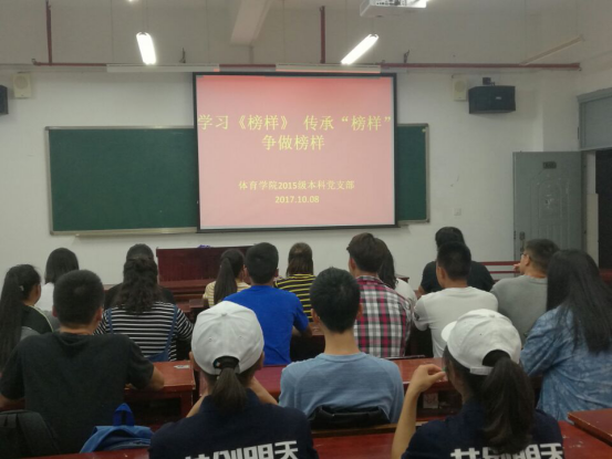 为迎接十九大,推进“两学一做”学习教育常态化、制度化,中共中央组织部和中央电视台,联合推出大型专题节目《榜样》。10月8日晚上,体育学院2015级本科党支部组织支部党员及发展对象同志共同观看了央视专题节目《榜样》。