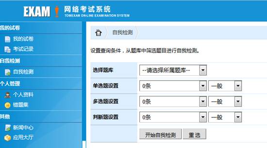 点击导航栏目上的“自我检测”,出现如下图所示: