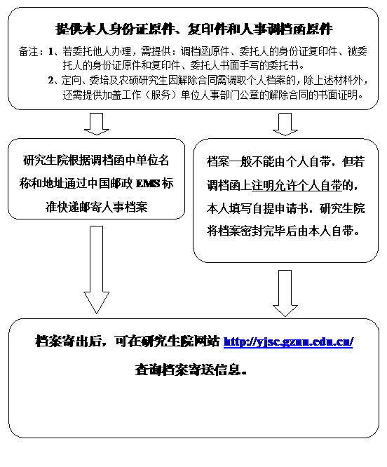 注:1、此流程主要针对毕业研究生个人办理调档事宜。