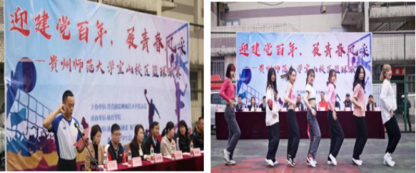 为庆祝建党100周年,传承体育文化,弘扬体育精神,由共青团贵州师范大学委员会主办,体育学院承办的“迎建党百年 展青春风采”贵州师范大学篮球联赛在我校宝山校区篮球场顺利开幕。