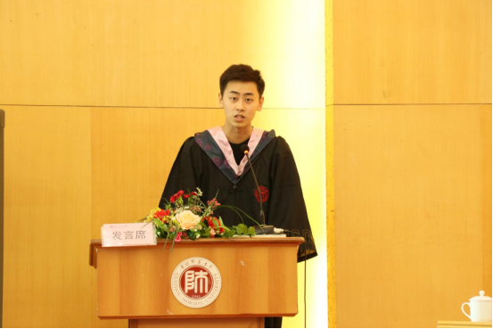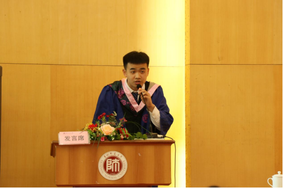 教师代表罗琳老师在发言中说到:“希望同学们走出校门后依旧不要忘记当初的梦想,年轻是最好的资本,要勇于试错,朝着梦想的方向前行。”毕业生家长代表从感恩老师、铭记校训院训和继续奋斗等方面对毕业生们作了嘱咐。研究生代表杨鹏飞同学和本科生代表刘冰杰同学也分别作了发言。