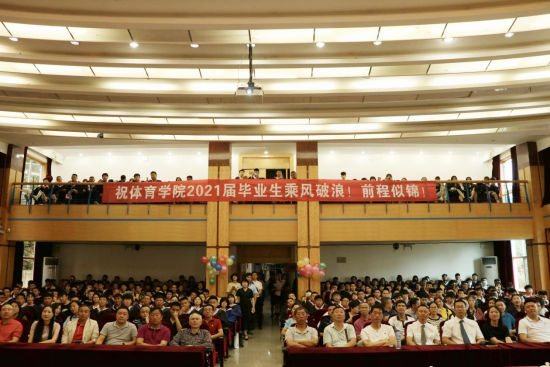 体育学院院长曾晓进为完成学习计划,符合毕业标准的31名研究生和248名本科生送上了最真挚的祝福,并从感恩、奋进两个关键词寄语毕业生们要明责任、敢担当,善待家人、朋友和他人,将“修身 明志 立德 铸魂”的院训和做人、做事、做学问的体院精神永远传承下去。