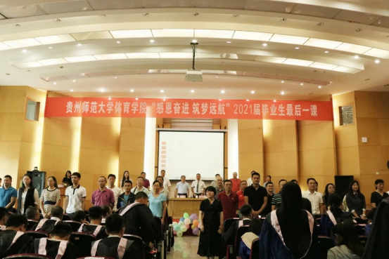 寄语声声,道不尽离别之情;离歌阵阵,诉不完师生之谊。6月20日上午10点,体育学院“感恩奋进 筑梦远航”2021届毕业生最后一课在田家炳三楼多功能厅隆重举行。学院党政领导、全体教师及2021届全体毕业生参加了本次大会。大会由院党委副书记吕涛主持。