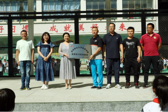 会上,双方签署了《合作协议》,并在学生大课间活动中进行了“授牌仪式”。